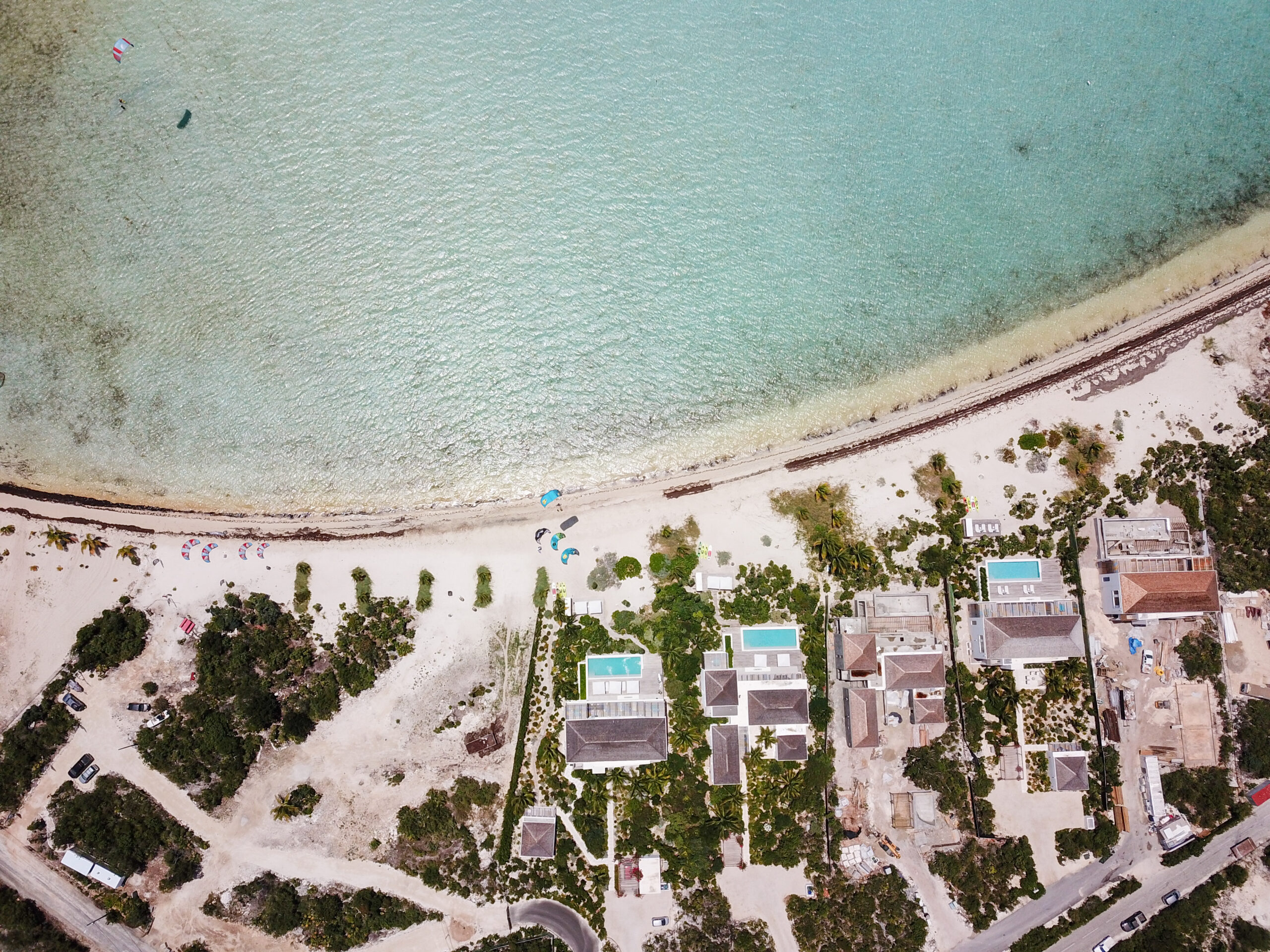 Tucked along the quieter eastern shore of Long Bay, Beach Enclave sits on three miles of fine white sand where shallow, crystal-clear waters ease outward for hundreds of feet — ideal for wading families and confident swimmers alike. Consistent trade winds off the northeast make this stretch a magnet for kiteboarders, while the gentle gradient keeps the shoreline calm enough for small children to play at the water’s edge.